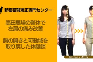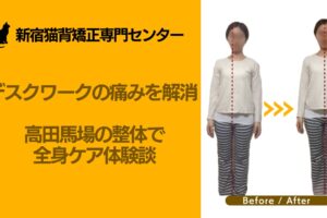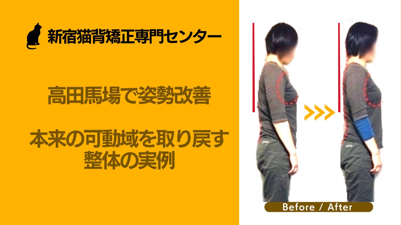 今回ご紹介するのは、高田馬場の新宿猫背矯正専門センターに通うN様の事例です。N様は幼少期から高田馬場周辺で育ち、現在も職場が高田馬場という地元密着型の生活を送っています。水泳や陸上競技の経験があり、本来は体を動かすことが好きなのに、長年の姿勢の悪さから肩甲骨周りが極端に硬くなり、ストレッチの基本姿勢すら取れない状態でした。